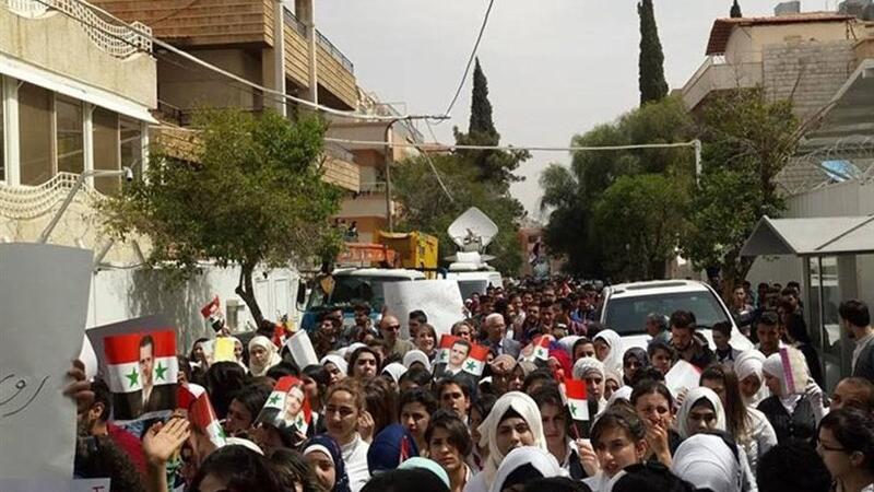 وشارك في المظاهرة، طلاب جامعة دمشق، الذين أرسلوا بيانا إلى الأمين العام للأمم المتحدة باسم الاتحاد العام لطلبة سوريا، تسلمه المستشار الإعلامي في مكتب الأمم المتحدة بدمشق، خالد المصري، وجاء فيه أن "الدور الأمريكي في سوريا هو محاولة استعمارية رخيصة"، مشيرين إلى أن الضربة الأمريكية جاءت في إطار "ما يسمى مشروع الشرق الأوسط الجديد الذي يهدف إلى تحصين الكيان الصهيوني ليبقى القوة الوحيدة في المنطقة".