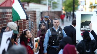 ونُظمت التظاهرة مساء الثلاثاء بالتوقيت المحلي (صباح اليوم الأربعاء)، بمشاركة أكثر من 100 شخص أمام كنيس "أنشي أمت" في منطقة "ليك فيو"، أثناء زيارة السفير الإسرائيلي لدى واشنطن رون ديرمر، مدينة شيكاغو.