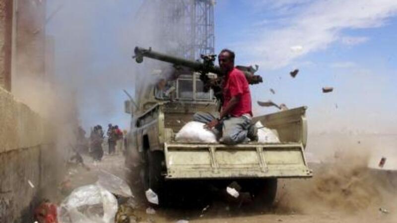 مقاتل من المقاومة الشعبية الجنوبية يطلق قذيفة اثناء اشتباكات في عدن