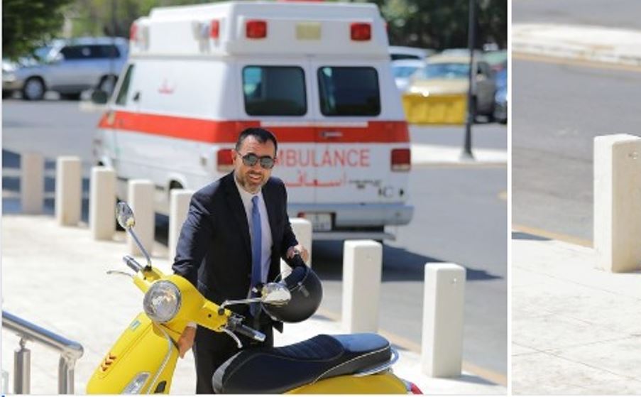 تداول نشطاء على مواقع التواصل الاجتماعي صورا للنائب في البرلمان الاردني زيد العتوم وهو يحاول وقف دراجة نارية جاء على متنها لحضور الجلسة الصباحية للبرلمان