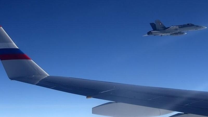 وقالت وزارة الدفاع السويسرية إن اثنتين من طائراتها إف/إيه-18 حلقتا بجوار الطائرة الروسية لسبع دقائق فوق الأراضي السويسرية.