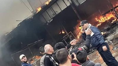 الحريق أتى على مخبز البنا، ومخزن الرزي للأخشاب، ومطعم أبو السهل عقل، ومحل عويضة للصرافة، ومطعم حمادة، ومحل الديراوي للخضروات.
