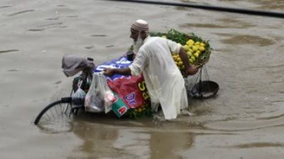 وكان مكتب الارصاد الجوي في باكستان قال في نشرة الطقس أمس السبت، إن هطول الامطار سيستمر دون توقف في فترة تتراوح بين 36 واثنين و40 ساعة. (د ب أ)
