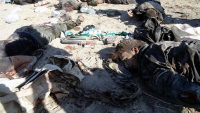 صورة وزعتها وكالة سانا السورية الرسمية قالت انها جثث مقاتلين في المعارضة قتلوا في ريف دمشق/أ.ف.ب