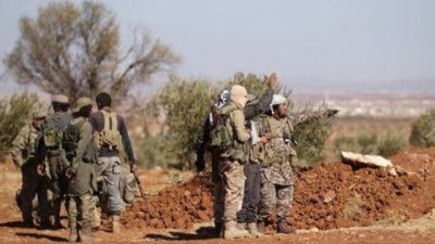 مقاتلون من المعارضة السورية أثناء تقدمهم نحو بلدة الباب