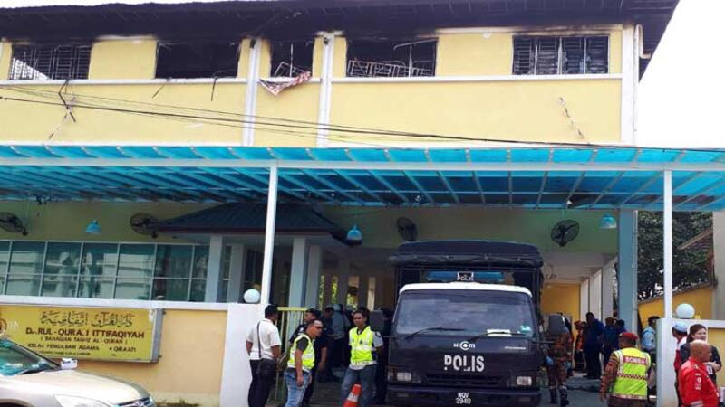 واندلع الحريق في المدرسة الدينية الاسلامية “دار القرآن اتفاقية” الواقعة في منطقة داتوك كيرامات ذات الغالبية من الملايو قبل حلول الفجر.