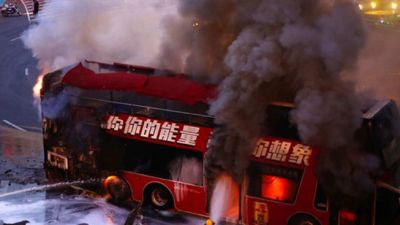 واشتعلت النيران فجأة في الحافلة القادمة من إقليم هينان المجاور مساء الجمعة على طريق سريع في مدينة تشنغدو، شمال غرب إقليم هونان.