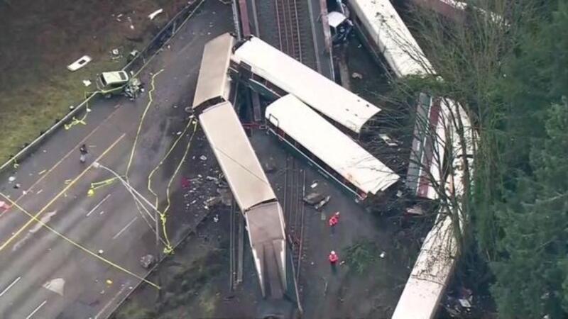قتل ثلاثة أشخاص على الأقل عقب خروج قطار عن مساره إلى الطريق السريع في ولاية واشنطن الأمريكية في ساعة الذروة الصباحية الاثنين.