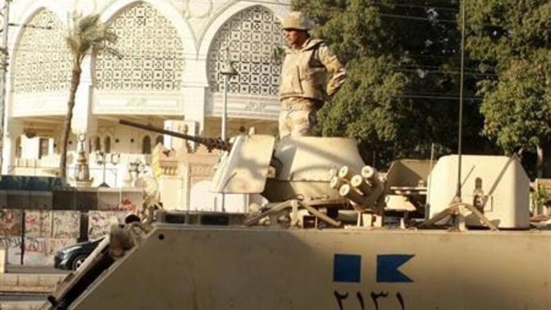 مجند مصري فوق مدرعة عسكرية أمام قصر الرئاسة في القاهرة