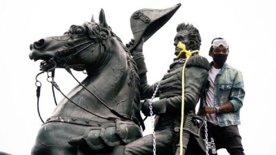 أسقط متظاهرون مناهضون للعنصرية في مونتريال، نصبا تذكاريا لأول رئيس وزراء في كندا، جون ماكدونالد (1815-1891)، وأطاحوا بالتمثال من المنصة.