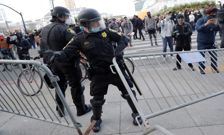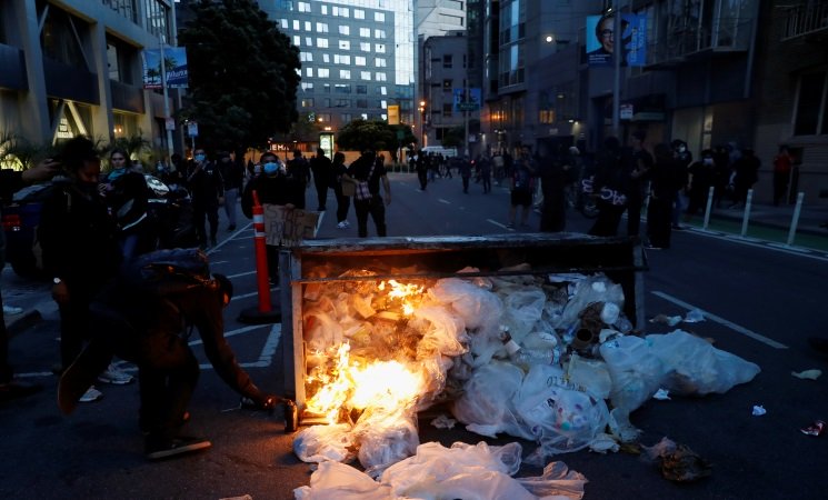 وتشهد جميع الولايات المتحدة الأمريكية، احتجاجات على مقتل فلويد، منذ الثلاثاء الماضي، متحولة إلى أحداث عنف بين المحتجين والشرطة.