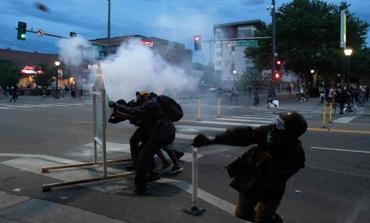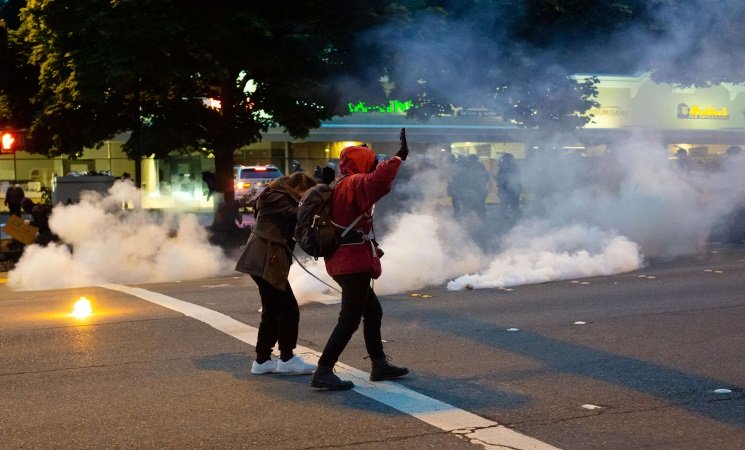 ومع تصاعد التوتر بين الشرطة والمحتجين، أطلقت الشرطة قنابل الغاز المسيل للدموع لدفع المحتجين للخلف بعيدا عن حديقة البيت الأبيض، فيما رد المحتجون بإلقاء الحجارة وزجاجات المياه.
