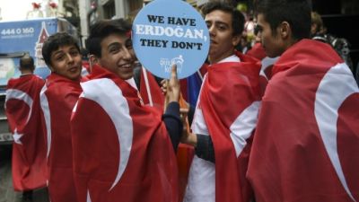 انصار اردوغان خلال تظاهرة في اسطنبول