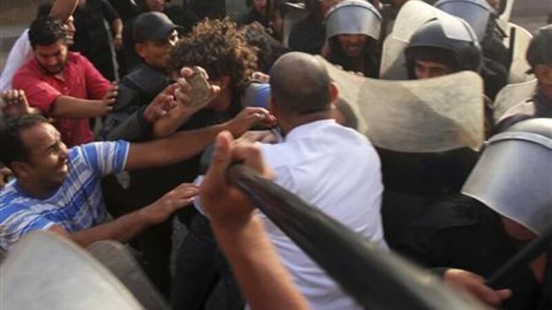 شرطة مكافحة الشغب تحاول التفريق بين محتجين واسلاميين في القاهرة