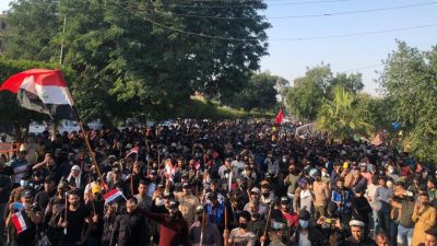 وتجمع المتجمهرون الموالين للحشد الشعبي التابع لايران أمام بوابة المنطقة الخضراء القريبة من وزارة الدفاع وحاولوا اقتحام المنطقة من خلال إسقاط الجدران الكونكريتية التي وضعتها السلطات الليلة الماضية ، كما رفعو شعارات زعمت وجود عمليات "التزوير" وطالبوا بإلغاء نتائج الانتخابات.