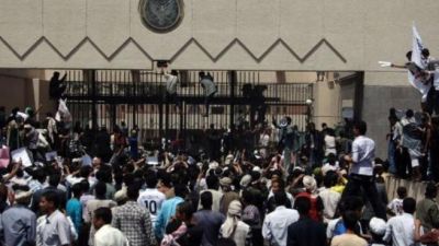 وقالت وكالة الانباء اليمنية (سبأ) إن الرئيس اليمني عبد ربه منصور هادي أدان الهجوم وشكل لجنة للتحقيق بعدما فشلت قوات الأمن في منع المتظاهرين من الوصول إلى المجمع.