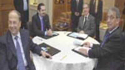 يستأنف الاثنين اللقاء الرباعي بين ممثلي الموالاة والمعارضة اللبنانية، في حضور الأمين العام للجامعة العربية عمرو موسى، لاستكمال المحادثات بين الأطراف التي امتدت لـ 4 ساعات مساء الأحد، دون الإعلان عن نتيجة محددة. إلا أن الموعد المقرر للاجتماع الجديد بقي طي الكتمان، "لدواع أمنية"، وفق ما أعلن المكتب الإعلامي لمجلس النواب اللبناني. ويبدو أن "الدواع الأمنية" ذاتها، هي التي دفعت البحرين إلى الطلب من مواطنيها عدم السفر إلى لبنان، "حرصاً على سلامتهم"، لتنضم بذلك إلى كل من السعودية والكويت، اللتان سبقتاها إلى نفس الدعوة. وكان لقاءً رباعياً عقد في مبنى البرلمان اللبناني، شارك فيه موسى، إلى جانب زعيم كتلة التغيير والإصلاح النائب المسيحي ميشال عون ممثلا المعارضة، ورئيس كتلة تيار المستقبل النائب سعد الحريري والرئيس السابق امين الجميل عن الأكثرية. وقال مصدر قريب من رئيس مجلس النواب نبيه بري إن "الأجواء كانت إيجابية, ونتوقع أن تكون هناك إمكانية حل", مشددا على أن "المبادرة العربية لا تزال حية وقائمة". وأوضح مصدر في المعارضة أن "العقدة تتمحور حول اقتراح تقدمت به المعارضة وتم تفسيره خطأ من جانب الموالاة".