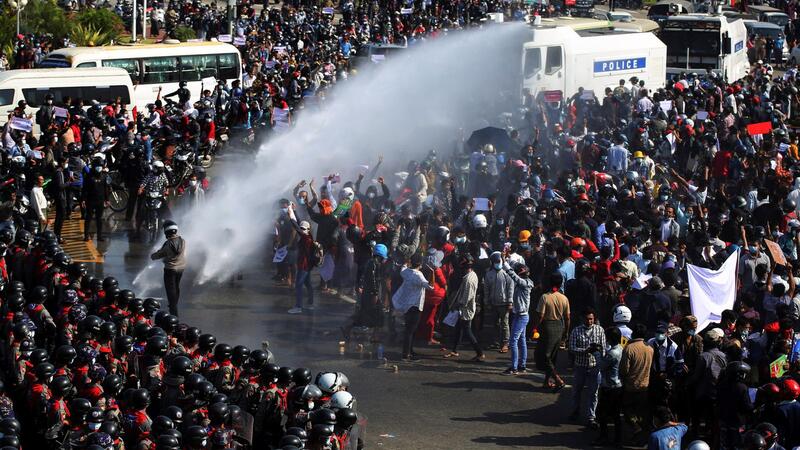 وقتل ما لا يقل عن 55 شخصا في ميانمار منذ بدء الانتفاضة السلمية ضد انقلاب الأول من شباط/فبراير الذي أطاح حكومة أونغ سان سو تشي المدنية.