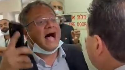 وييظهر التسجيل تصدى رئيس القائمة المشتركة العربية في الكنيست أيمن عودة للنائب المتطرف إيتمار بن غفير، ومنعه من اقتحام الغرفة التي يرقد فيها القواسمي في مستشفى كابلان الاسرائيلي.