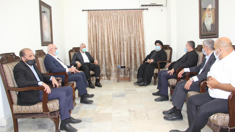 ووفقا لما نقلته قناة “المنار” التابعة لحزب الله، فقد “جرى استعراض مفصل لمجمل التطورات السياسية والعسكرية في فلسطين ولبنان والمنطقة، وما تواجهه القضية الفلسطينية من أخطار خصوصا صفقة القرن ومشاريع التطبيع الرسمي العربي مع الكيان الغاصب ومسؤولية الأمة تجاه ذلك”.