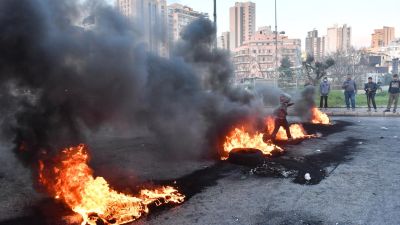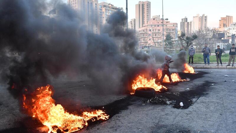 وقطع محتجون عدة طرقات بالإطارات المشتعلة في معظم المناطق اللبنانية.