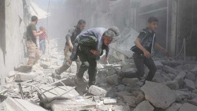 وقال المرصد إن ستة أشخاص على الأقل قتلوا وأصيب عدد أكبر وحوصروا داخل مبان منهارة نتيجة غارات جوية يوم الجمعة على مناطق خاضعة للمعارضة.