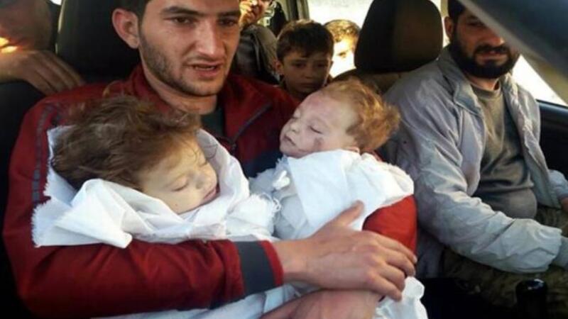 وخلّف القصف، الذي وقع في بلدة خان شيخون بريف إدلب، أكثر من 100 قتيل.