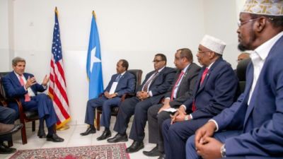 وكانت واشنطن اعترفت في كانون الثاني/يناير 2013 اعترفت بالحكومة الفدرالية الصومالية ثم اعلنت استئناف العلاقات الدبلوماسية مع سلطات مقديشو حيث توجه وزير الخارجية جون كيري لساعات في ايار/مايو في زيارة غير مسبوقة.