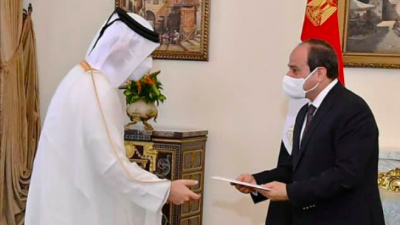 استقبل الرئيس المصري عبد الفتاح السيسي في القاهرة الثلاثاء، وزير الخارجية القطري محمد بن عبد الرحمن آل ثاني، الذي سلمه رسالة من أمير قطر تميم بن حمد آل ثاني تضمنت توجيه الدعوة لزيارة الدوحة.