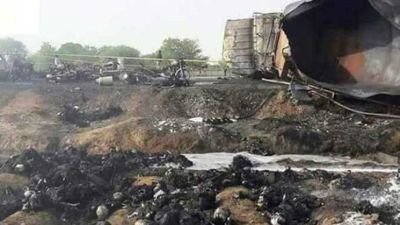 وقال المسؤول في السلطات المحلية رانا محمد سليم افضل للتلفزيون الحكومي إن “123 شخصا على الاقل قتلوا وجرح اكثر من مئة آخرين في حريق اندلع عندما انقلبت شاحنة صهريج وهرع الضحايا لجمع النفط” من الطريق.