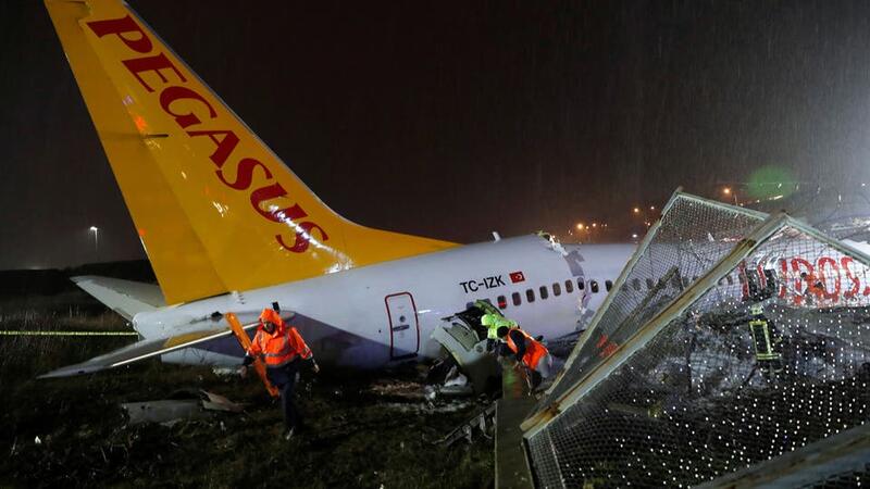 وفي وقت سابق الأربعاء، تحطمت طائرة ركاب مدنية تابعة لشركة تركية خاصة، قادمة من ولاية إزمير، عقب هبوطها بشكل عنيف في مطار صبيحة غوكشن بإسطنبول، ما أدى لانشطارها إلى 3 أجزاء، وإصابة راكبين بداخلها.