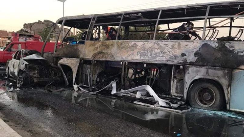 ورجحت ان يرتفع عدد الضحايا حيث اصيب نحو 15 بجروح وحروق بليغة فيما تتواصل عملية إخراج ضحايا قضوا داخل الحافلة.