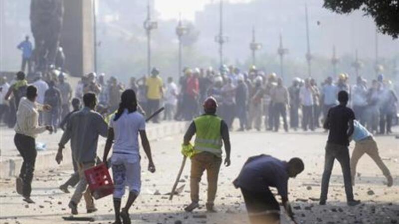 وقتل ثلاثة أشخاص في اشتباكات بين مؤيدين ومعارضين لمرسي يوم الاثنين في أحد مداخل ميدان التحرير بالقاهرة ومدينة قليوب شمالي العاصمة.