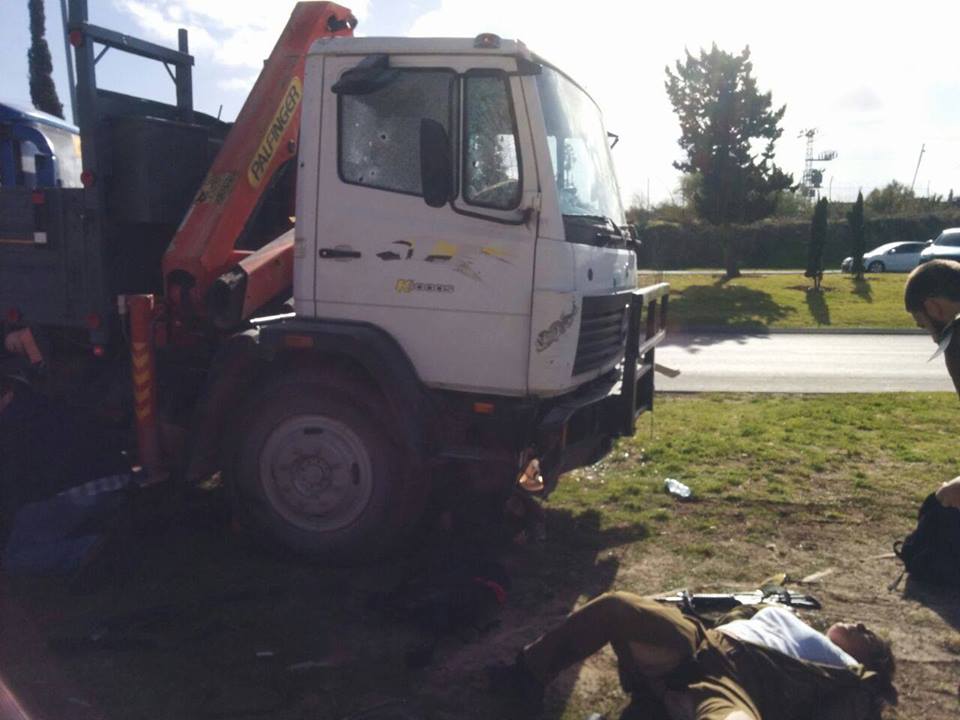 وتحدثت مصادر اسرائيلية عن وجود جنود عالقين تحت عجلات الشاحنة ما قد يرفع عدد القتلى او المصابين.