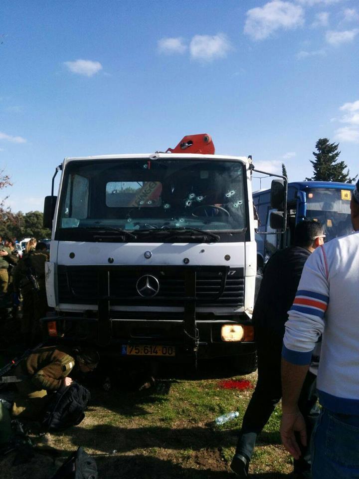 واطلقت قوات الاحتلال النار على سائق الشاحنة واصابته بجراح خطيرة بعد ان ادعت ان الحديث يدور عن عملية دهس مدبرة.