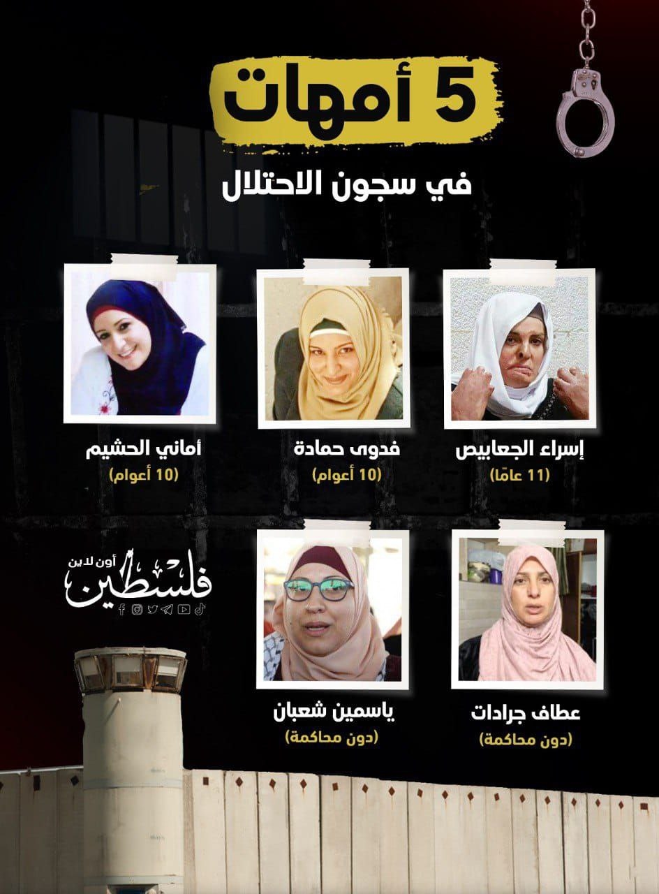 وتعيش 5 امهات فلسطينيات في ظروف صعبة وماساوية خلف القضبان في الزنازين الاسرائيلية وهن :