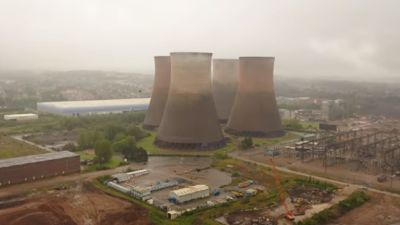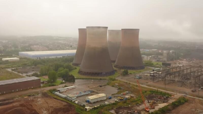 استغرقت عملية إزالة أبراج التبريد بمحطة راغلي الكهروحرارية التاريخية في ستافورد شاير في بريطانيا بتفجير مسيطر عليه، 5 ثوان فقط.