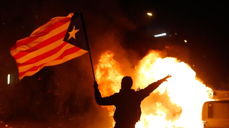 وهذه أول حوادث عنف بارزة تشهدها برشلونة منذ أعمال الشغب التي اندلعت في إقليم كاتالونيا احتجاجاً على الأحكام القضائية التي صدرت في 14 تشرين الأول/أكتوبر بحقّ تسعة قياديين انفصاليين حكم عليها بالسجن لفترات تتراوح بين تسعة و13 عاماً بسبب دورهم في محاولة الإقليم الانفصال عن مدريد عام 2017. (أ ف ب)