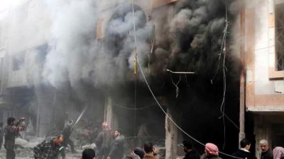 ارشيف/ دخان كثيف ونيران اثر غارة للطيران السوري على منطقة دوما قرب دمشق