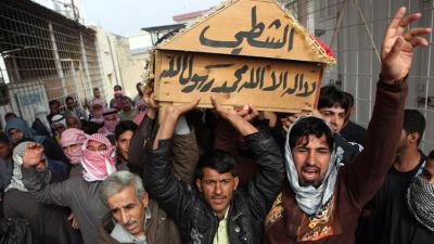وتابع "يجب ان تكون القيادة بيد رجل واحد، يتخذ القرارات بعيدا عن تدخلات السنة والشيعة". واليوم، قتل 12 شخصا على الاقل واصيب 28 اخرون في تفجير انتحاري بحزام ناسف. واوضح ضابط برتبة عقيد في قيادة عمليات ديالى لوكالة فرانس برس ان "انتحاريا فجر نفسه في جنازة نجل الشيخ علي الشلال العراكي، داخل مقبرة في منطقة الوجيهة (25 كلم شرق بعقوبة)، ما اسفر عن مقتل 12 واصابة 25 اخرين".