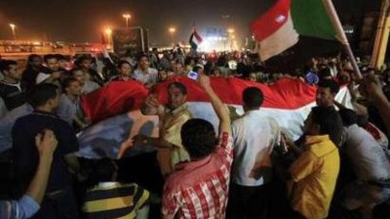 وعند السفارة المصرية في العاصمة اليمنية صنعاء سار ما لا يقل عن 500 يمني ومصري وهم يحملون لافتات كتب عليها "تحيا مصر" وهتفوا قائلين "يا حكام صح النوم.. هذا مبارك سقط اليوم" وأطلقوا ابواق السيارات والاعيرة النارية في الهواء.