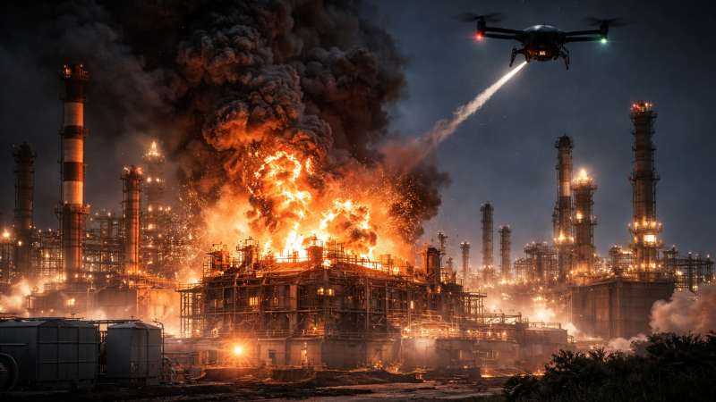 اندلاع حريق محدود داخل الوحدة المستهدفة، دون امتداده إلى مرافق أخرى في المصفاة.