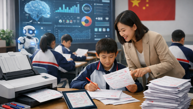 تعتمد العديد من المدارس الصينية على أنظمة ذكاء اصطناعي تقوم بمسح الواجبات المنزلية وتقييمها وطباعتها مرفقة بالملاحظات.