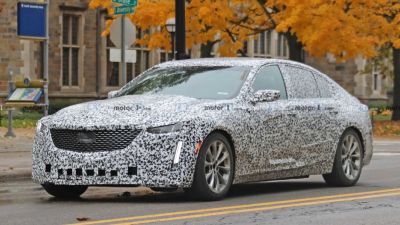 تأتي كاديلاك CT5 بهوية الشركة الحديثة المتمثلة بمصابيح نحيلة وشبك عريض ويبدو المقطع الجانبي للسيارة رياضياً للغاية بسقفه المائل، ويبدو أن السيارة ستحمل مصابيح خلفية متصلة كما توحي بذلك التمويهات.