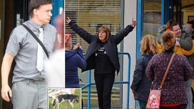 لم تتمكن أم بريطانية من إخفاء فرحتها أمام عدسات الكاميرات ابتهاجًا بقرار سجن ابنها لمدة 16 أسبوعًا بعد أن ضرب جروًا حتى الموت.