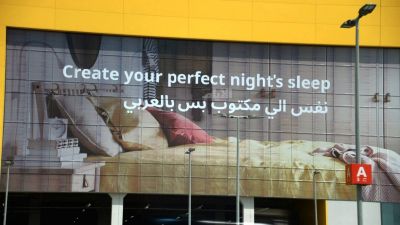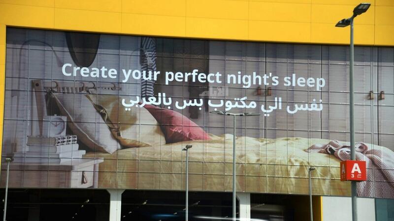 وبحسب الصور المتداولة، فقد وضعت الشركة على المبنى الخاص بها إعلانًا يقول باللغة الإنجليزية Create your perfect night's sleep، وهي تعنى باللغة العربية، "هيئ نومك المثالي ليلًا"، لكن تحت العبارة كتب باللغة العربية جملة "نفس الي مكتوب بس بالعربي".