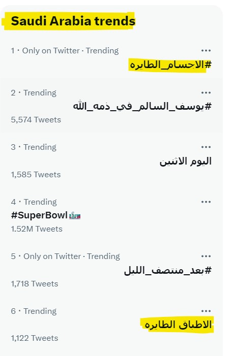 وانشغل المغردون في السعودية بإعادة تداول تصريحات المسؤولين الأمريكيين المتعلقة بـ الأجسام الطائرة والتي جاءت بعد سلسلة من عمليات إسقاط أجسام مجهولة في سماء أمريكا وكندا خلال الأيام القليلة الماضية.
