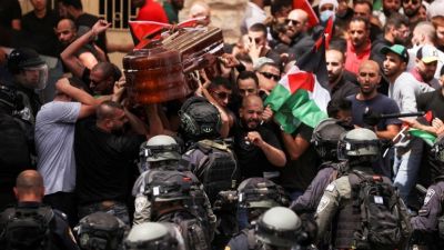 مشهد سيريالي غريب بحق، يتأرجح من خلاله التابوت الذي يحمل جثمان الشهيدة شيرين أبو عاقلة على الأيادي المتسابقة لحمله وإبقائه مرتفعاً. صراع غريب يجري في المشهد بين طرفين، أحدهما مكون من أفراد متشابهين، يرتدون ذات البزات السوداء التي تغطي أجسادهم من رأسها لأخمص قدميها، بزات توحدهم جسداً وفعلاً، كأنهم كلهم صورة واحدة كربونية متكررة، كأنهم رجال آليون، يتحركون بنفس الطريقة، يضربون بنفس اللامبالاة، يرفعون الهروات بنفس الميكانيكية، بلا تفاعل إنساني حقيقي، بلا روح خلف الآلة.