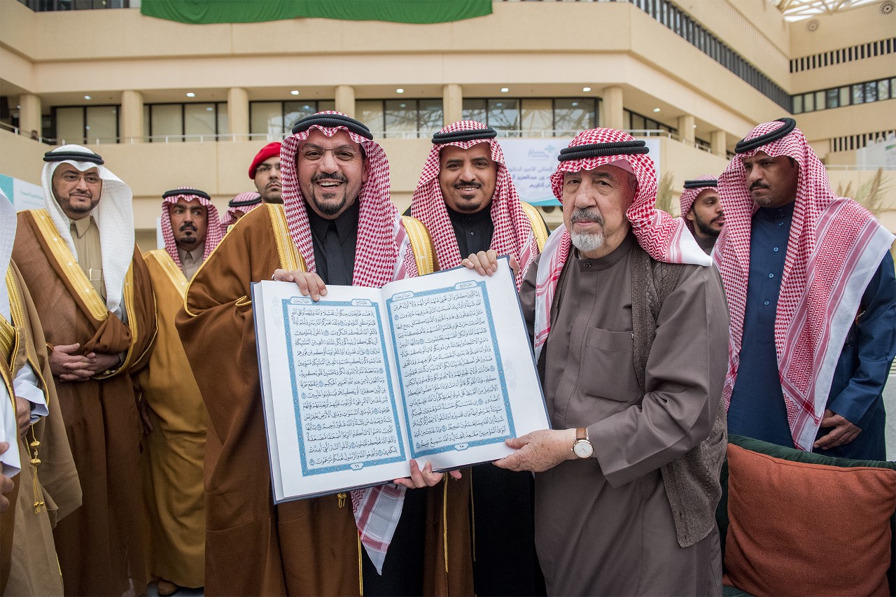 وشوهد الشيخان في الفيديو وهما يقبلان يد خطاط المصحف الشريف، الشيخ عثمان طه، في مشهدٍ يُظهر مدى التبجيل للقرآن الكريم وما يتعلق به.