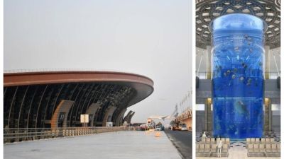 رفع مطار الملك عبدالعزيز الدولي في جدة بالسعودية الستار عن أكبر حوض أسماك في مطارات العالم.
